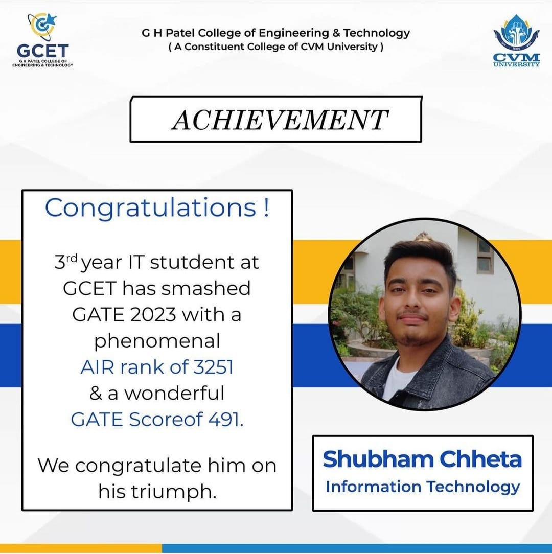 Jay Rajput, Mechanical engineering student of second year was felicitated by Gaurav Puraskar on 78th Anniversary day of Vallabh Vidyanagar for his extraordinary performance in International Karate Championship. The GCET family feels proud of his achievement. |