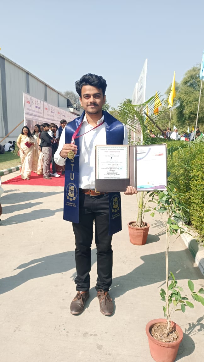 Patel Pranav, enrollment number 190110120042, from Mechatronics department has achieved a significant academic milestone by winning a gold medal from Gujarat Technological University. This remarkable accomplishment reflects Pranav's dedication, hard work, and academic excellence.