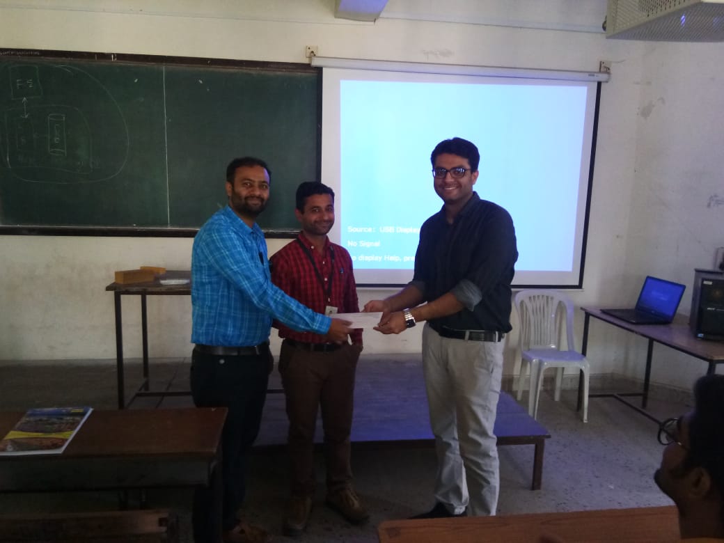 Total 32 students of the third year were benefitted by this seminar. The expert discussed the benefits of using NoSQL database such as MongoDB as compared to RDBMS. He also made aware students about power of JavaScript and it’s example is Node.js. The real time demonstration of MongoDB and Node.js were shown with sample scripts.