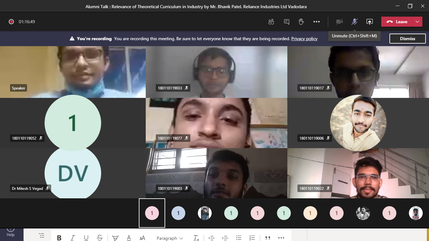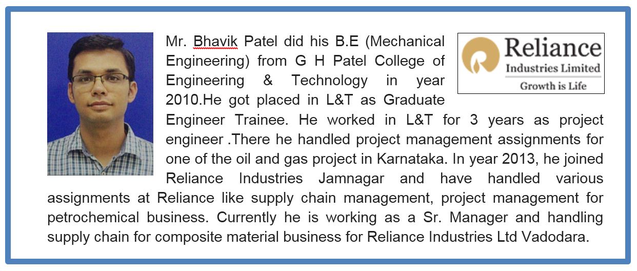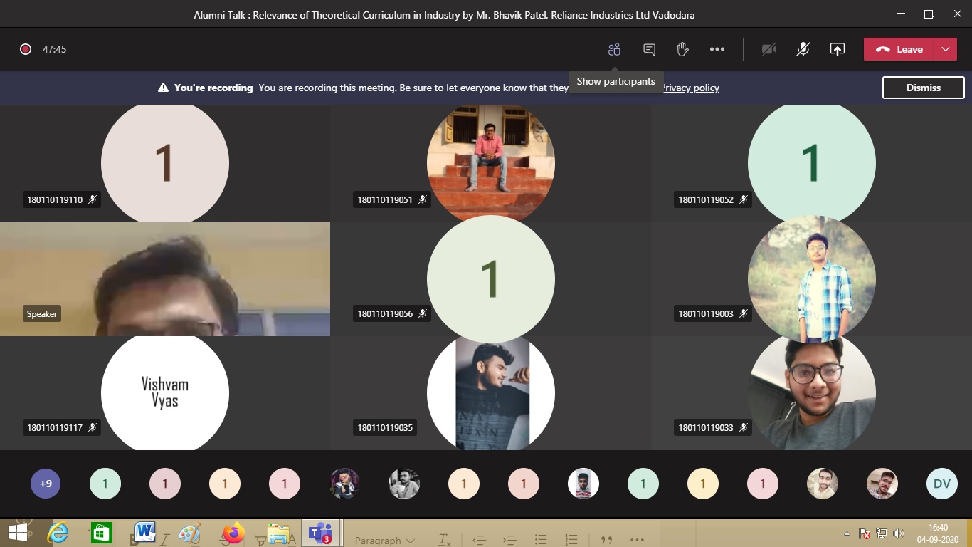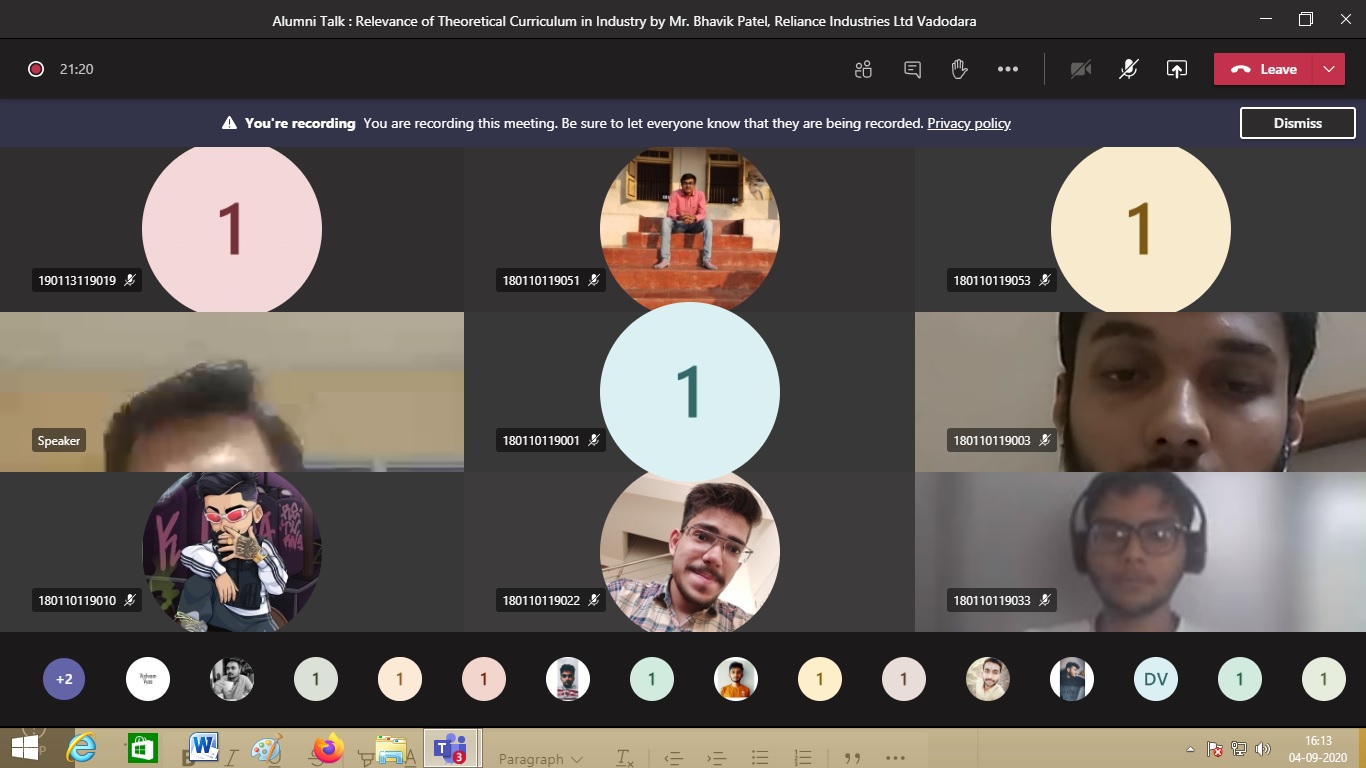 This was an interactive session in which the speaker Mr. Bhavik Patel shared his Industry experience. Speaker discussed the relevance of theoretical curriculum in industry Students asked questions related to different subjects that might be helpful in the industry.