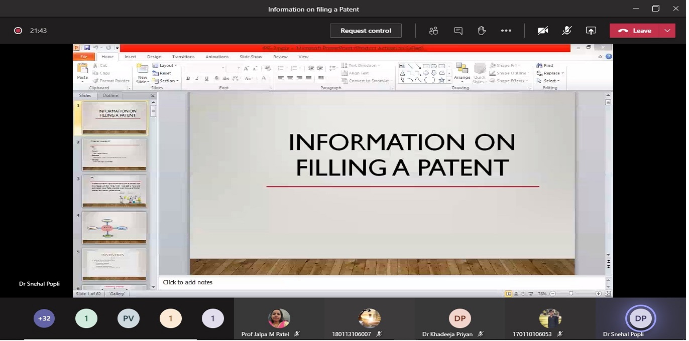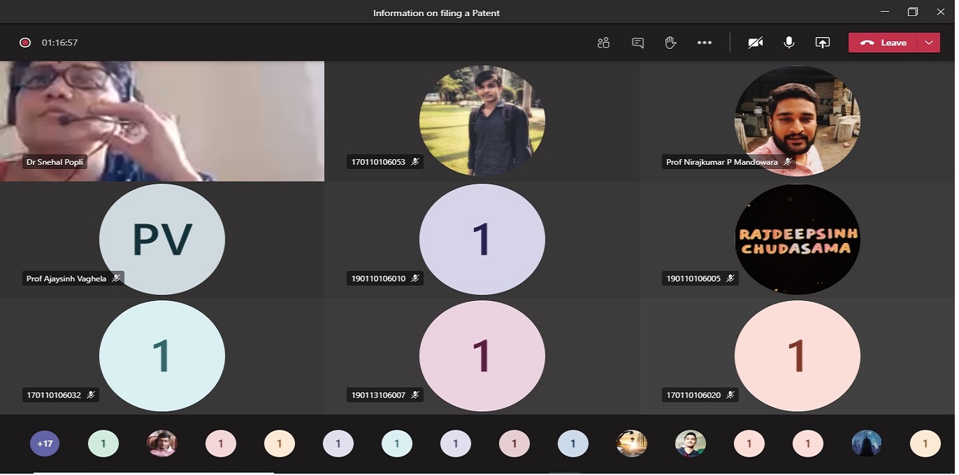 The Civil Engineering department at G H Patel College of Engineering & Technology (A Constituent College of CVM University) had organized an Expert Talk on “Information on filling a Patent” on 1st September, 2020. Students of 2nd, 3rd and 4th year civil engineering department have participated.