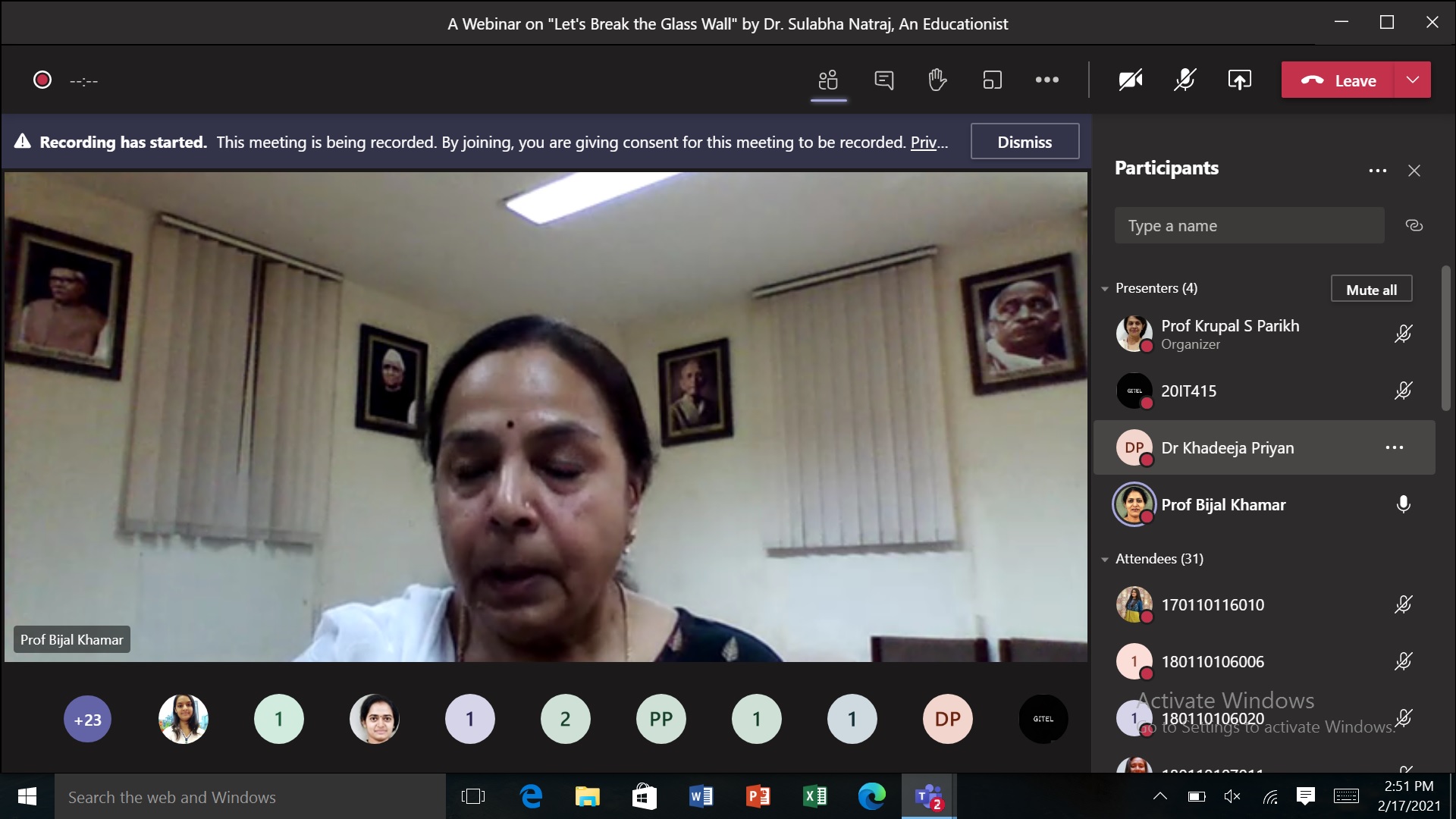 Total 93 participants (68 student participants and 25 faculties) have attended the program. Overall it was very inspirational lecture for girl students.