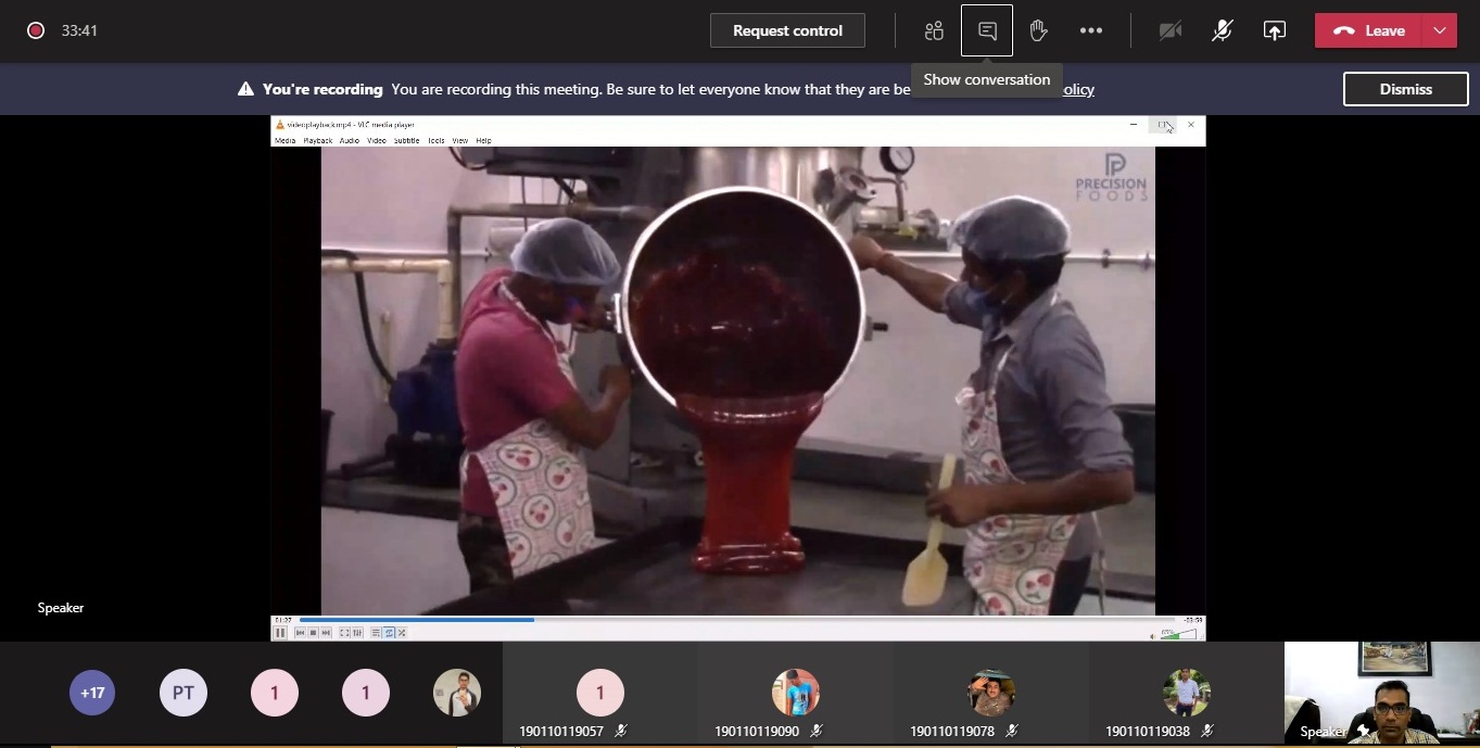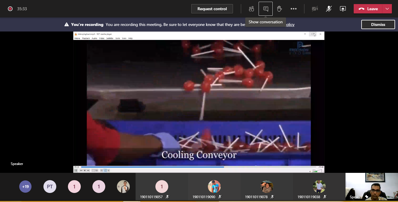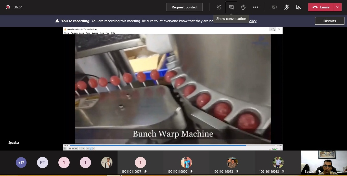 Virtual Tour of Precision Foods, Surat was organized on 10th Sept.2020, 11.00 am to 1.00 pm for Second Year Mechanical students. 28 students took advantage of the same. The tour was guided by our Alumni Mr. Parth Zapadiya.