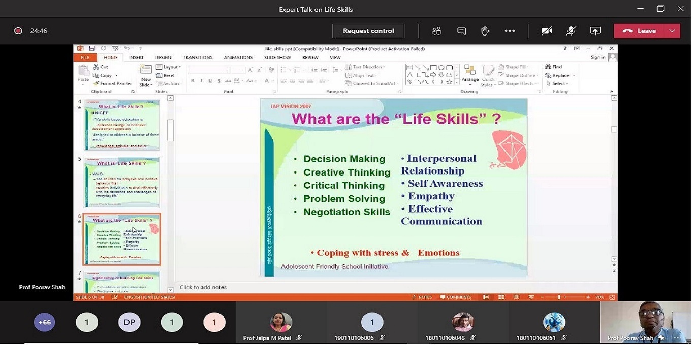 Tthe Civil Engineering department at G H Patel College of Engineering & Technology (A Constituent College of CVM University) had organized an Expert Talk on “Life Skills” on 4th September, 2020. Students of 2nd, 3rd and 4th year civil engineering department have participated.