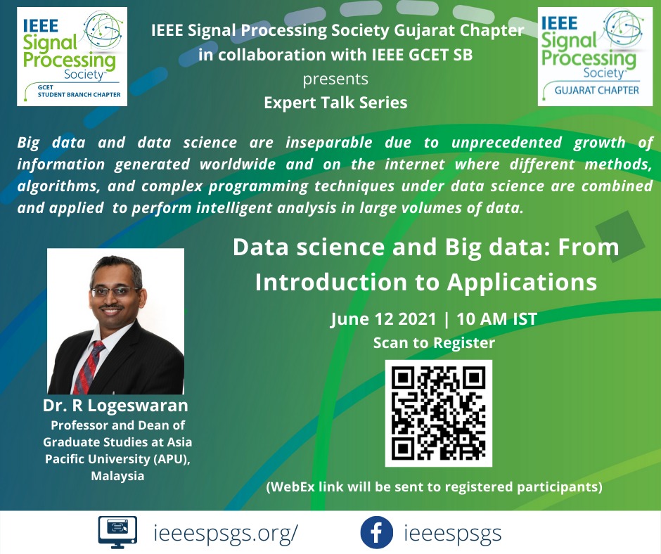 SPS Chapter of IEEE GCET SB in collaboration with IEEE SPS Gujarat Section and IEEE UP Section conducted and Expert Talk in the Technical Talk Series which focused on the topic “Data Science and Big Data: Introduction to Applications”. The speaker for this event was Dr.R. Logeswaran, who is Head of Asia Pacific Centre for Analytics.