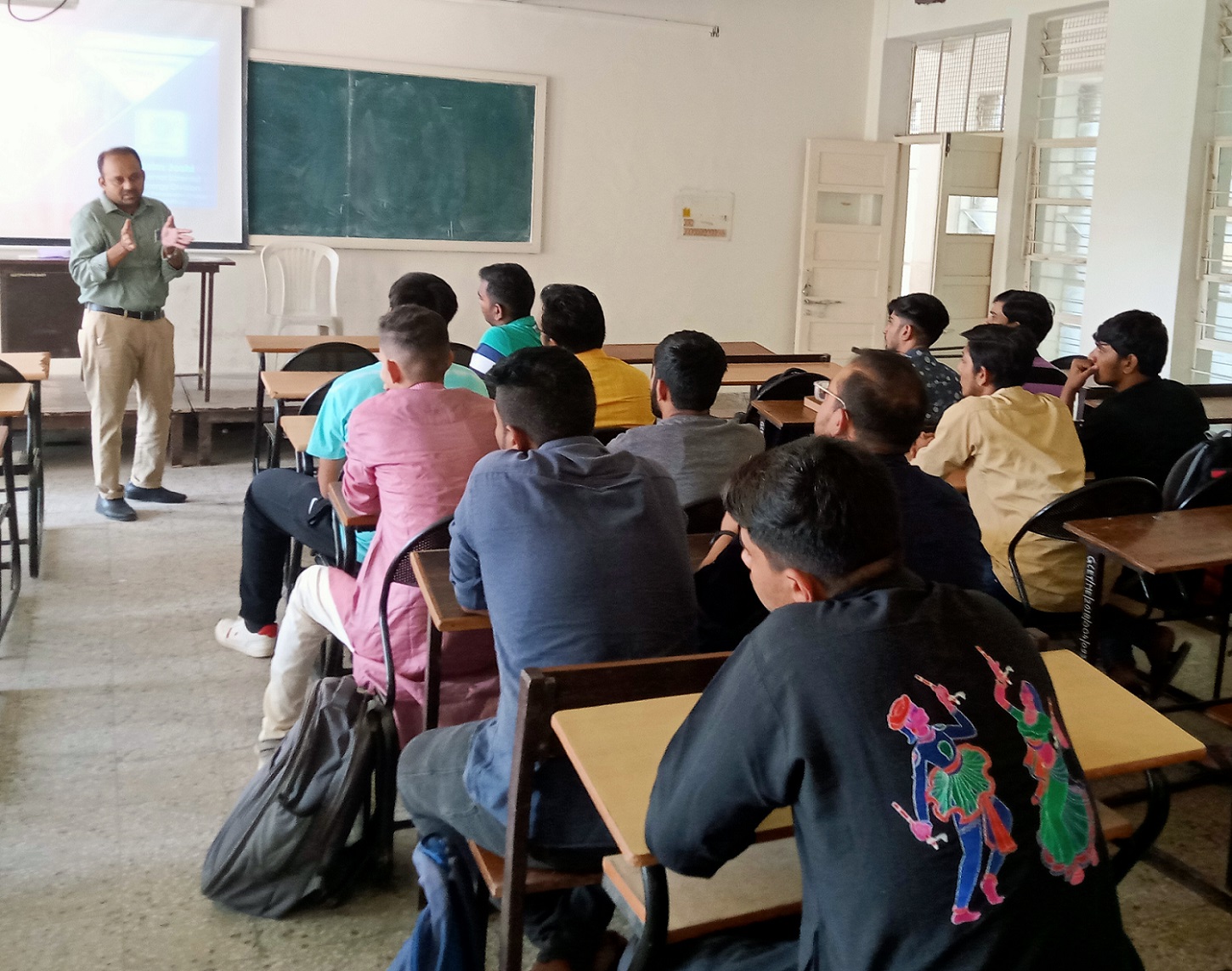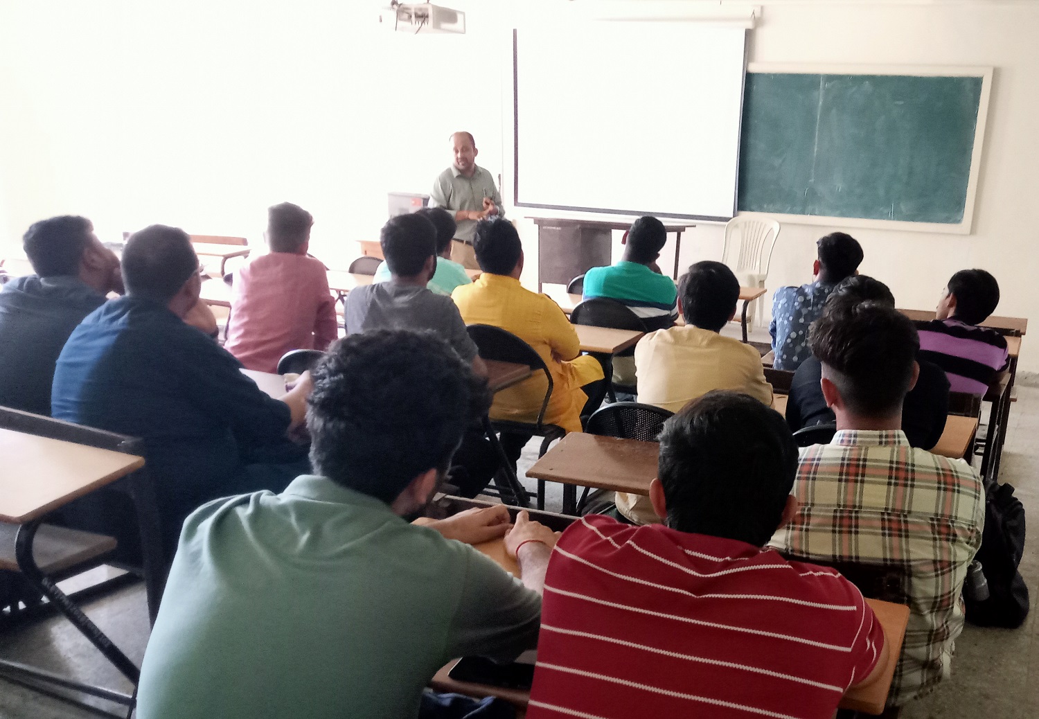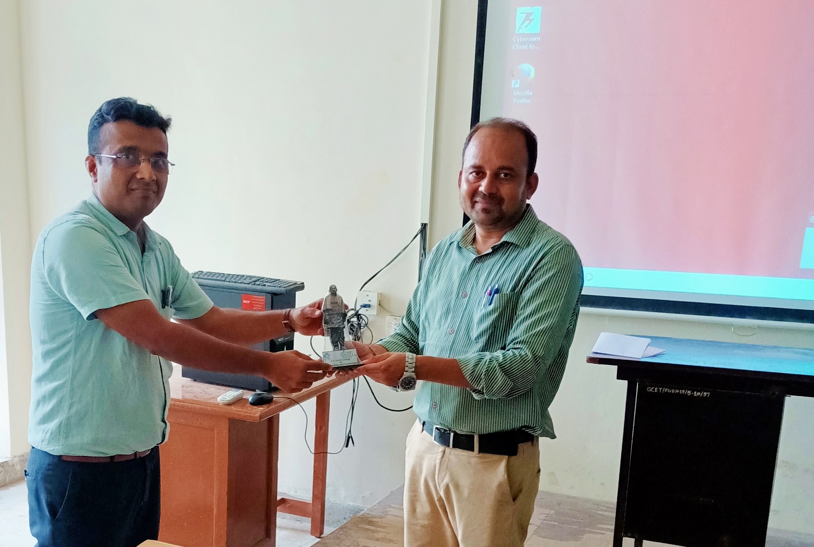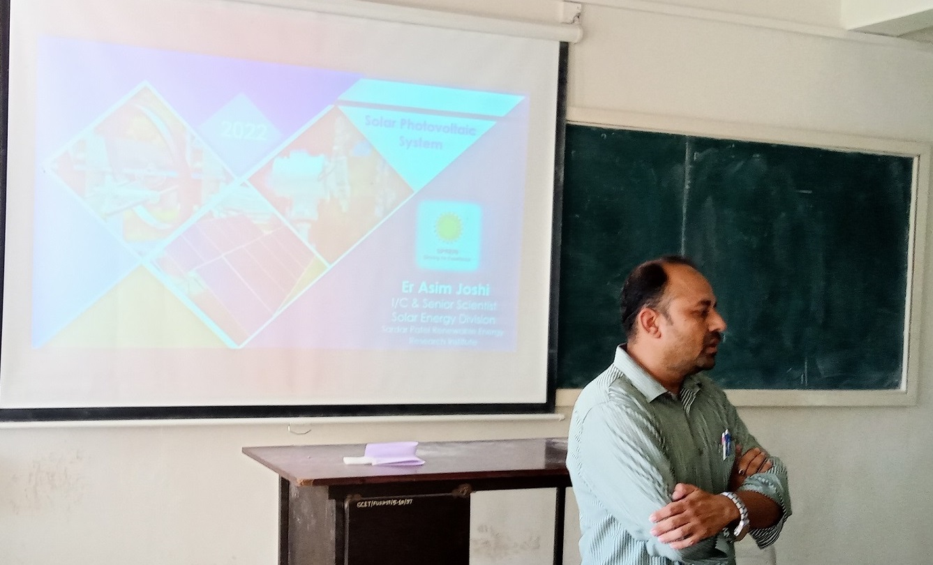 An Expert Talk by Mr. Asim Joshi , Senior Scientist & Head of Solar Division, Sardar Patel Renewable Energy Research Institute (SPRERI) on topic "Photovoltaic System" was organised for third year Mechanical students studying elective course "Alternate Energy Sources". 15 students took advantage of the session. The speaker talked about the design of photovoltaic system, new material for PV cells etc. in detail. After the talk there was a Q & A session in which students could clear their doubts.