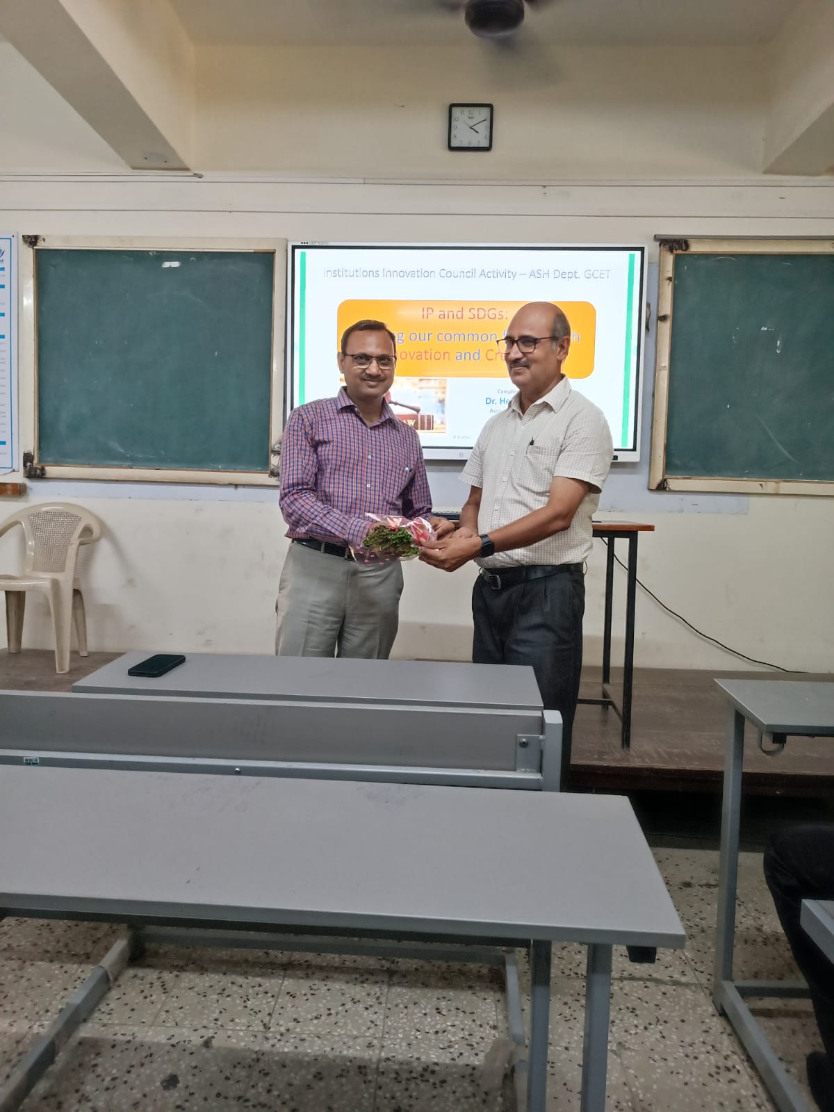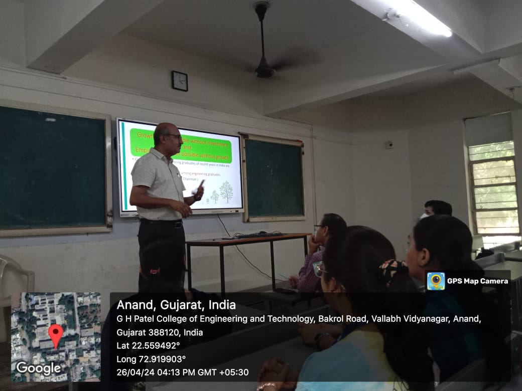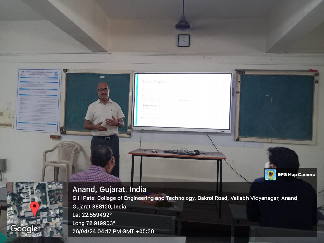 ASH department, GCET has celebrated “World Intellectual Property Day” on 26th April, 2024. Institute Innovation Council of GCET in collaboration with ASH Department, GCET organized an expert talk on “IP and SDGs: Building Our Common Future with Innovation and Creativity". Dr. Hemant Thakkar, Head of Mechanical Department, GCET delivered the talk. Total 54 students and 12 faculty members have attended the expert talk.
