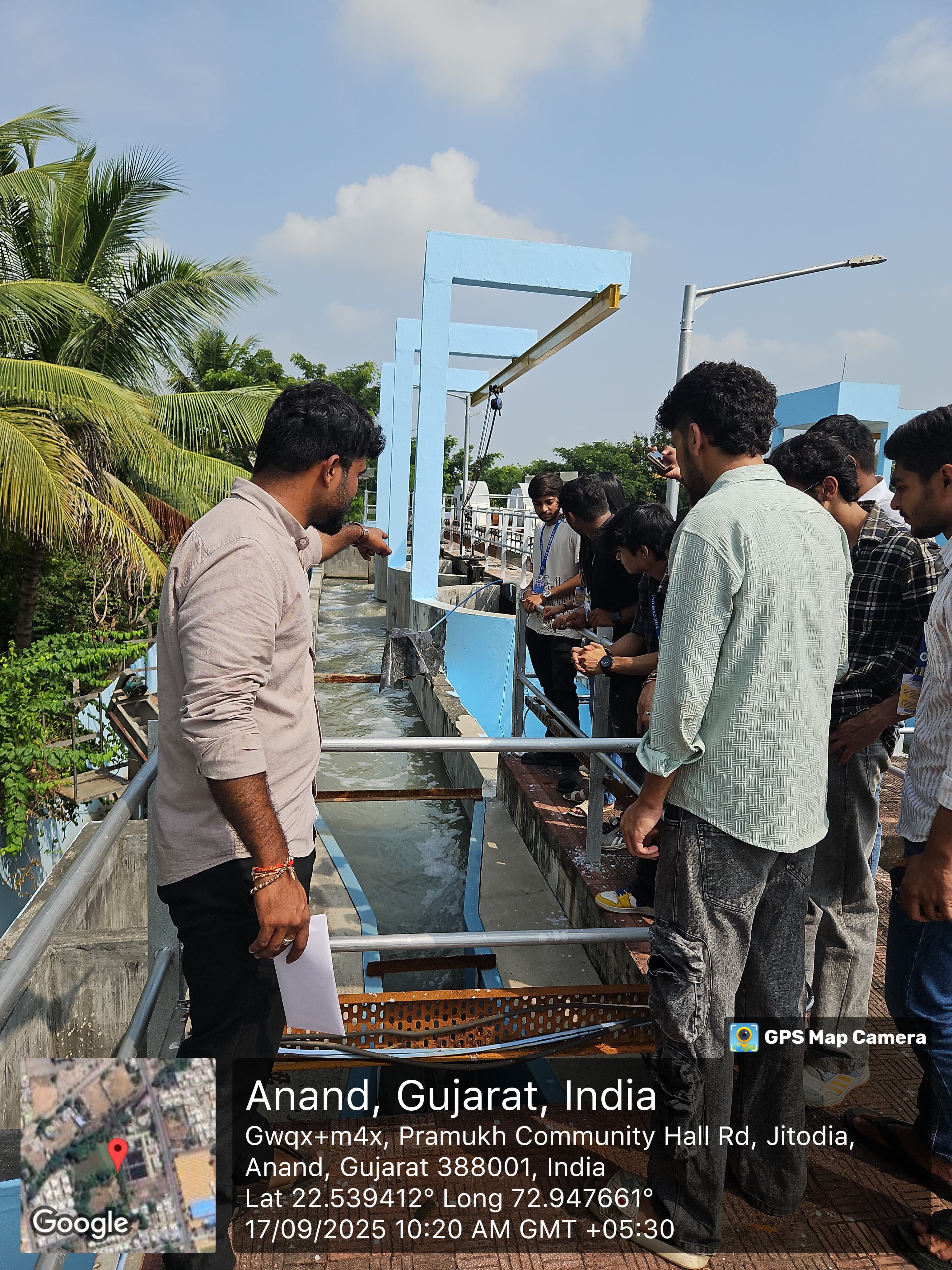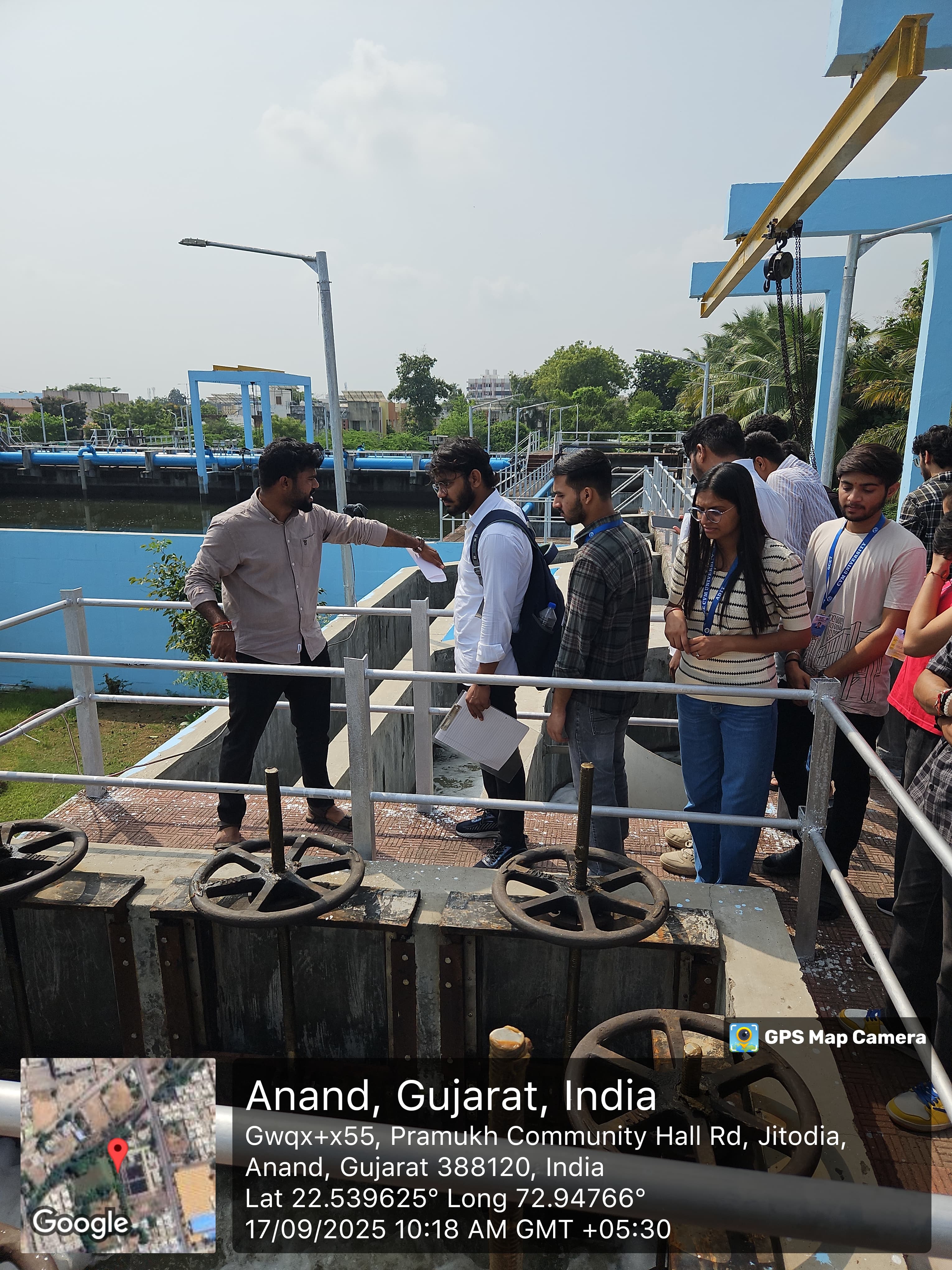 Department of Civil Engineering, GCET has organized (17/09/2025) educational visit to Sewage Treatment Plant, Anand. A total of 18 students (3rd year) along with Dr. Snehal Popli visited the treatment units.