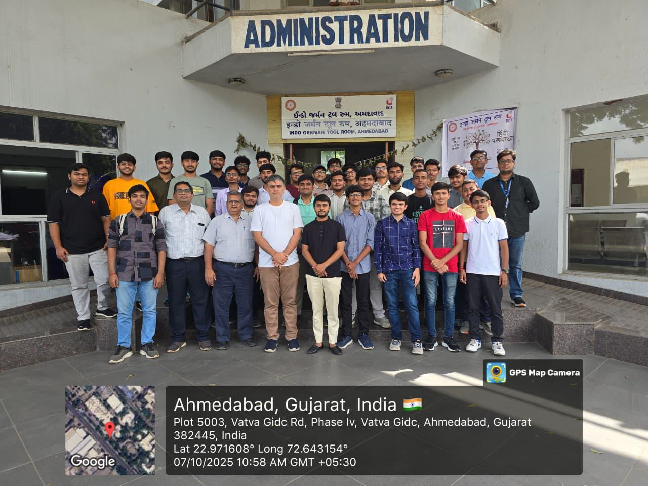 On October 7, 2025, the 2nd-year Mechatronics students of G H Patel College of Engineering & Technology(GCET) under The Charutar Vidya Mandal (CVM) University successfully completed an industrial visit to the Indo-German Tool Room (IGTR) in Vatva, Ahmedabad. IGTR is a premier training and technical service institution, primarily focused on tool engineering, CNC machining, and providing high-quality technical solutions to the manufacturing industry.