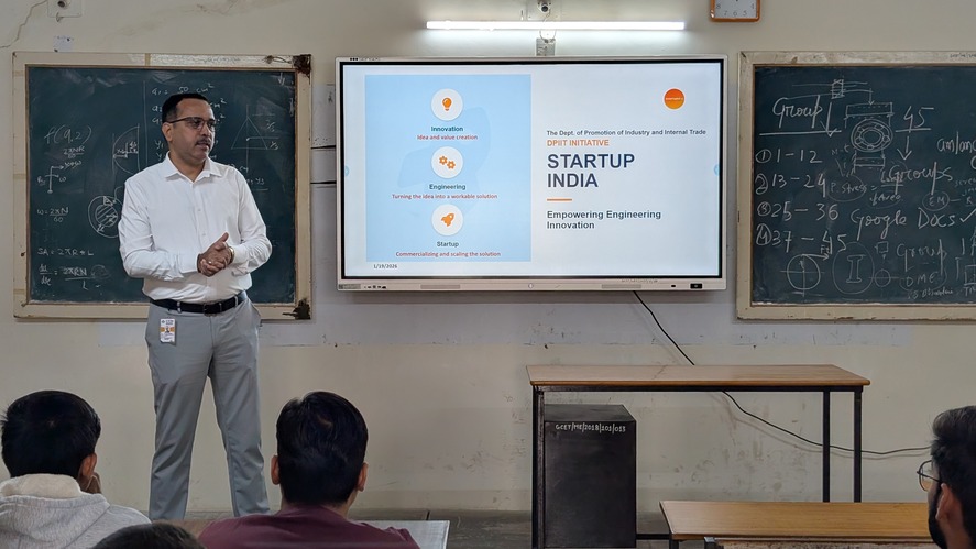 Day - 2026. Talk related to startup, its importance, challenges and opportunities was organised for GCET students. Talk was followed by interactive session where students queries were addressed.