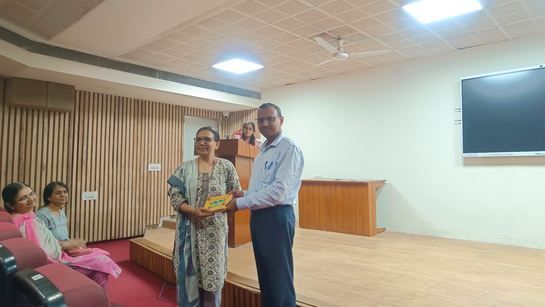 Department of Applied Science and Humanities organized an expert talk to commemorate the 5th Anniversary of the National Education Policy (NEP) 2020. The expert speaker for the session was Dr. Amita Patel. Her session provided a detailed overview of the NEP 2020, its transformative features, and its significance in shaping the future of education in India. She emphasized the importance of holistic development, interdisciplinary education, and skill-based learning as envisioned by the policy. A special gesture was made by Dr. Vipul Shah, Head of the ASH Department, who presented a copy of the Bhagavad Gita to the guest speaker as a token of respect and gratitude.