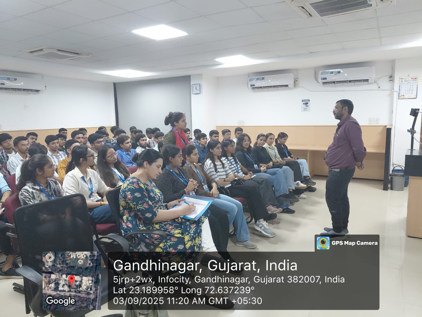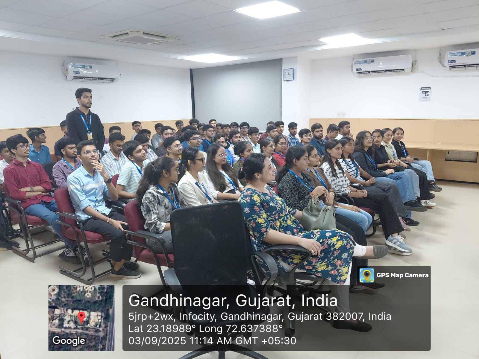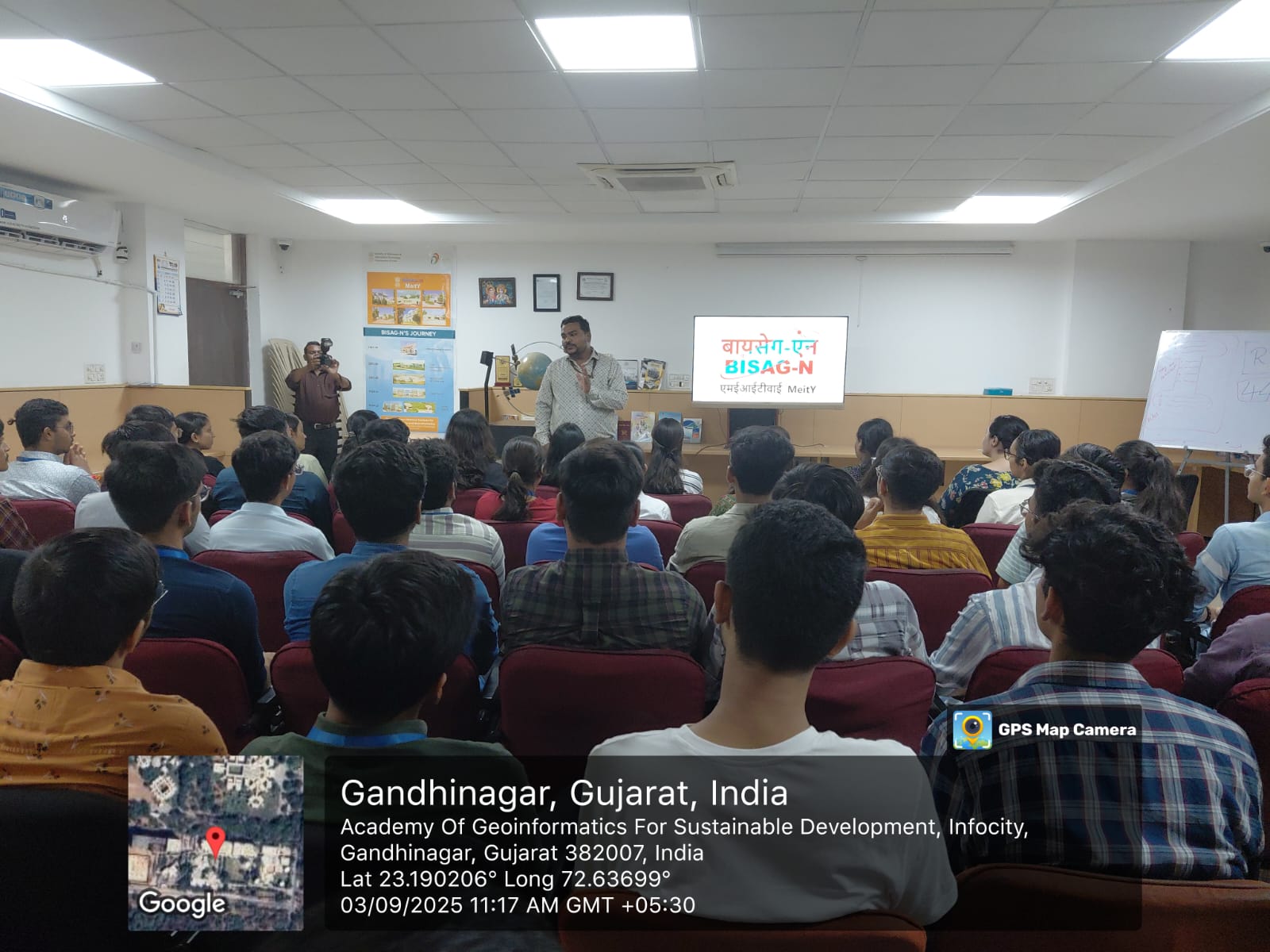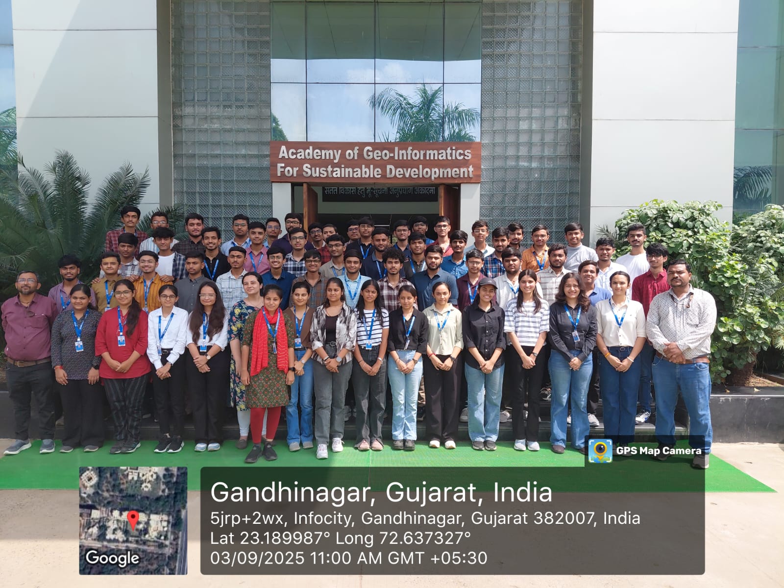 Department of Information Technology GCET organized a one day industrial visit to “Bhaskaracharya National Institute for Space Applications and Geo-informatics (BISAG-N)”, Gandhinagar on 3rd September, 2025. This visit was organized for students of 2nd year Information Technology. A total of 63 students from the Information Technology with 2 faculty members had participated in this visit. The objective of this visit was to make the students aware about the technologies used in the domain of Satellite communication and remote sensing applications, geo-informatics, and geospatial technologies.