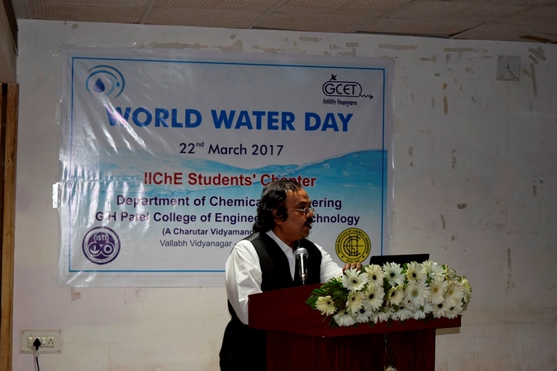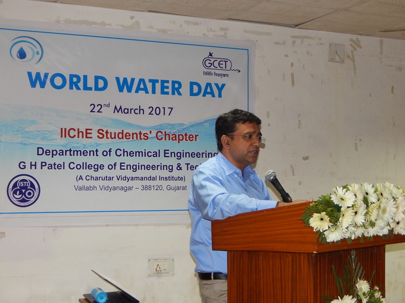 World Water Day is an annual event celebrated on 22 March. The day focuses attention on the importance of universal access to clean water, sanitation and hygiene (WASH) facilities in developing countries. The day also focuses on advocating for the sustainable management of freshwater resources Chemical Engineering Department of G H Patel College of Engineering and Technology (GCET), a Charutar Vidya Mandal Institute, Vallabh Vidyanagar, along with IIChE Students Chapter, celebrated World Water Day as a means of focusing attention on the importance of freshwater and sustainable management of freshwater resources in line with the theme of this year- 'Wastewater'.