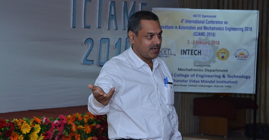To continue with the progress and to promote the research work, Mechatronics Department of G H Patel College of Engineering & Technology (GCET), Vallabh Vidyanagar, has successfully organized ‘4th International Conference on Innovation in Automation and Mechatronics Engineering 2018 (ICIAME2018)’ on 2-3 February, 2018. This conference is in continuation of the previous three successful conferences ICIAME – 2013, ICIAME – 2014 and ICIAME-2016. Initial funding to organize ICIAME2018 was provided by AICTE, New Delhi.