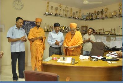 On 7 August 2014, P. Atmaswarup Swami (Kothari Saint, Akshardham ? New Delhi) along with the P. Bhagvat Charan Swami (Kothari, BAPS Swaminarayan Temple, Anand), other saints and devotees have visited G H Patel College of Engineering and Technology (GCET) at 9:30 am. The staff members of GCET have offered a very warm welcome to all saints and devotees. At the beginning, P. Atmaswarup Swami had a short interaction with Dr. Himanshu Soni (Principal, GCET college). Dr. Himanshu Soni have also given introduction of all heads of department, faculty members and non teaching staff. Everyone have taken the blessings of P. Atmaswarup Swami. Approximately 100 people, including staff members and students, have remained present to welcome all saints and to earn the blessings of P. Atmaswarup Swami. While sharing the thoughts with staff members and students, P. Atmaswarup Swami has showered his expression of good wishes for GCET. P. Atmaswarup Swami has said that everyone has to consider GCET as a family for its utmost progress. He also added that GCET will become the best (number one) college with the collective effort of faculty members, students and supporting staff. In the context of that he also shared his idea about the collective effort. He added that one should not work individually for himself, but contrary should work for GCET. "Progress of institution is the real progress of all belonging to it", he added. P. Atmaswarup Swami has given stress upon the feeling of ownership for the organization, where one is serving. In that regard, swami said, "In absence of the feeling of ownership, it is difficult create affection to the organization." At last, everyone has gathered for prayer. All saints have showered blessings at the New Mechatronics building at the time of departure. It is indeed an awesome opportunity to have such an eminent personality at GCET for motivational wordings.