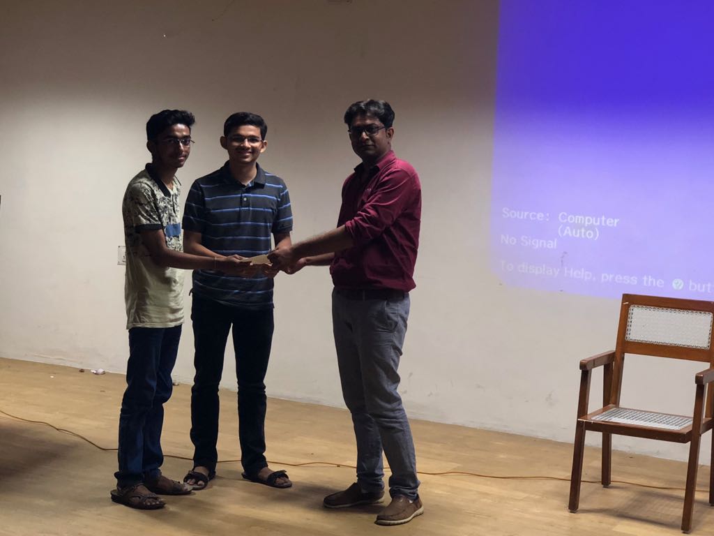 The talk was delivered by Mr. Chirag Kaneriya, Co – founder of Anagh Consulting Pvt. Ltd., Ahmedabad, Gujarat. He started with the brief of his story towards startups. He provided with the ways to make money from one’s expertise using various social media platforms. He encouraged students with the statistical facts of people who are quite a success earning using these platforms including his own company. He shared with the students his experiences of success and failure while making his company achieve the current state of reputation. This inspired students. He encouraged students to pursue the entrepreneurship on the innovative ideas they have. Also, he explained the money making policies and marketing strategies by providing interesting examples. At the end, he presented the prizes to the winner and runners up of the event “Idea Pitchers” and motivated them.
